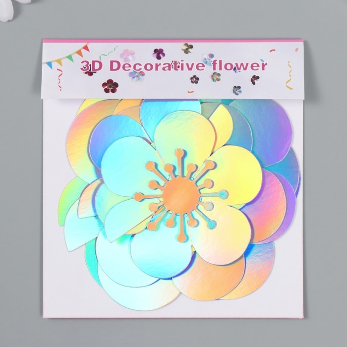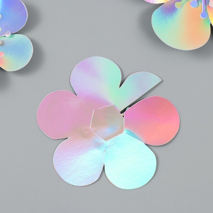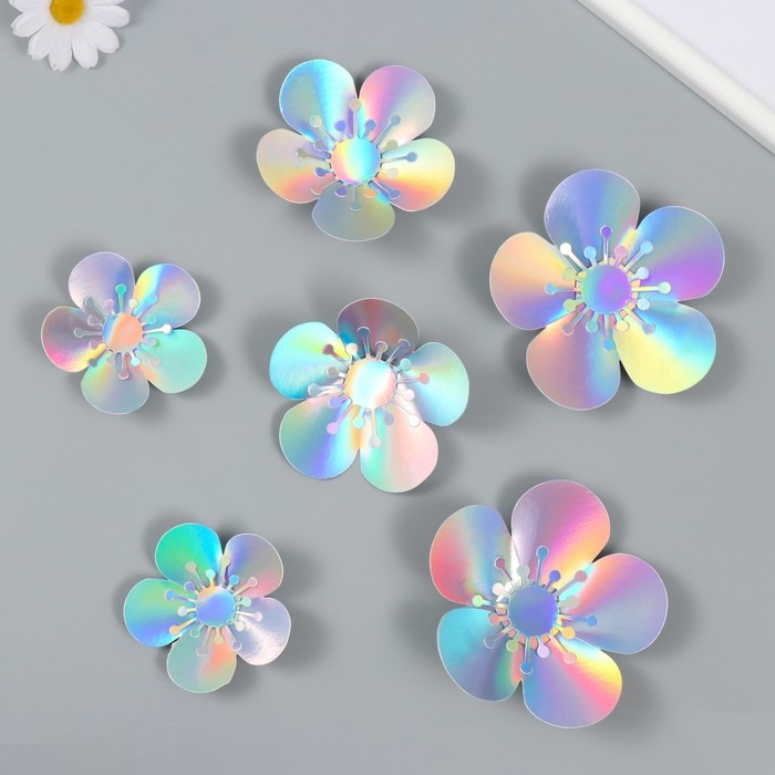 Наклейка бумага "Цветок. Серебристая голография" набор 6 шт 13х12,3х0,6 см