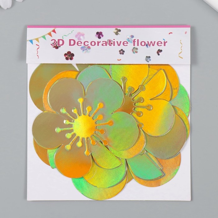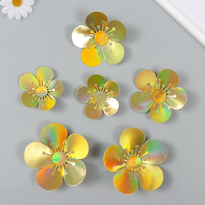 Наклейка бумага "Цветок. Золотая голография" набор 6 шт 13х12,3х0,6 см