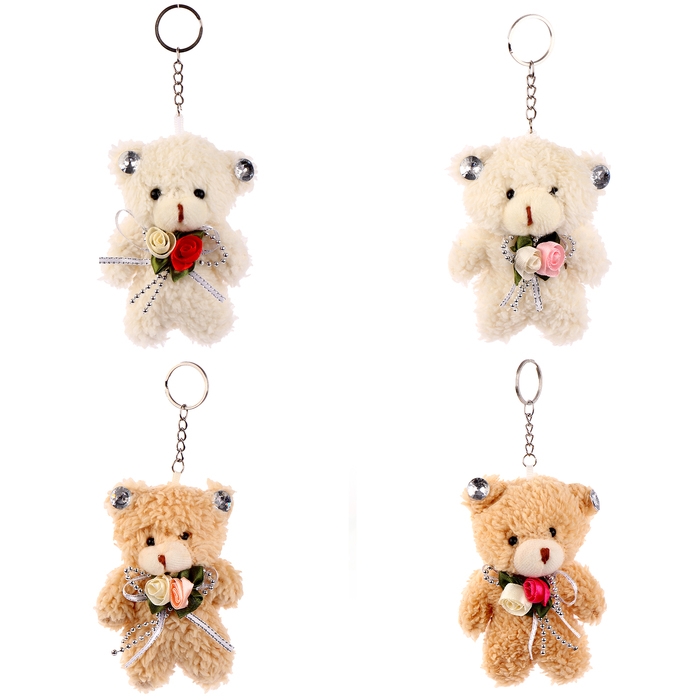 Мягкая игрушка «Мишутка с цветами» на брелоке, 11 см, цвет МИКС