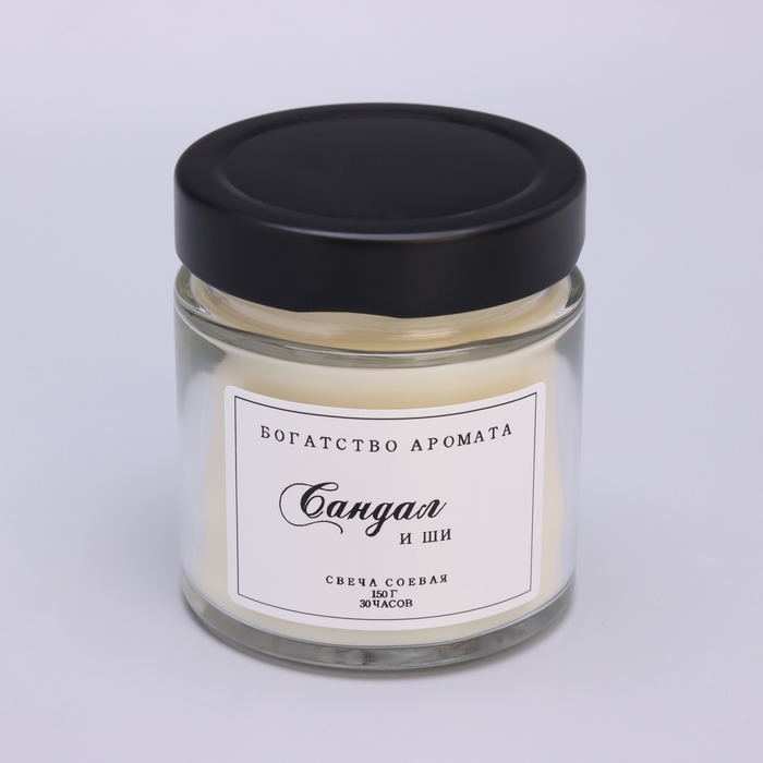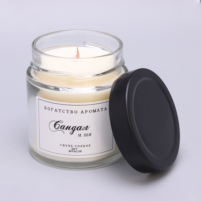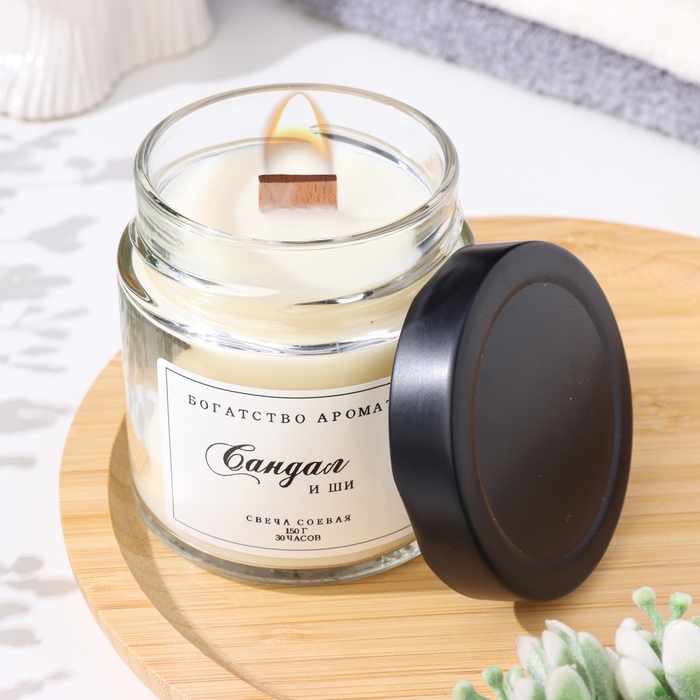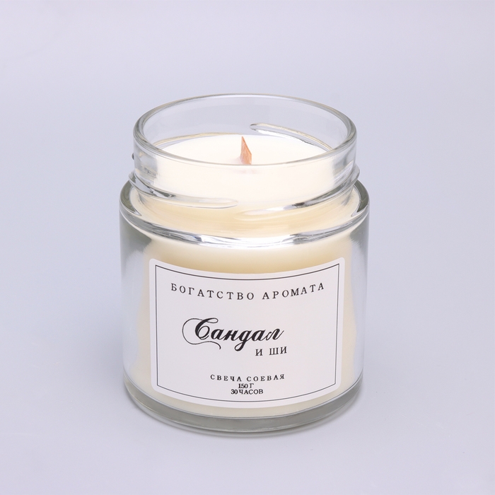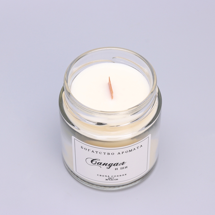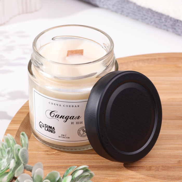 Свеча ароматическая из соевого воска в банке, 150 г, деревянный фитиль, сандал и ши