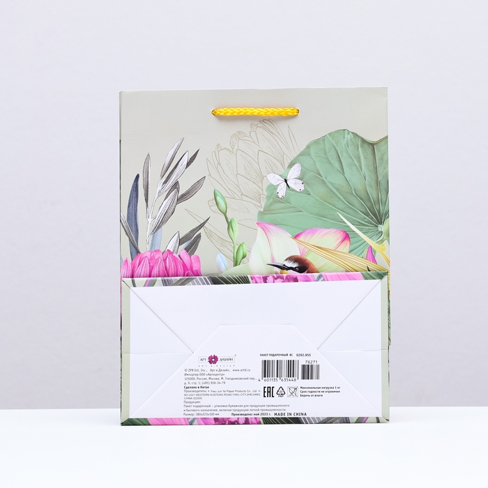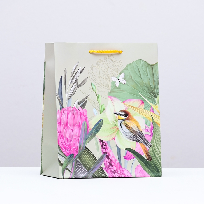 Пакет подарочный "Птичка в цветах", 18 х 22,3 х 10 см