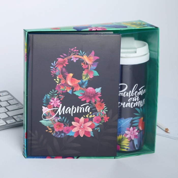 Подарочный набор «8 марта из цветов»: ежедневник и термостакан