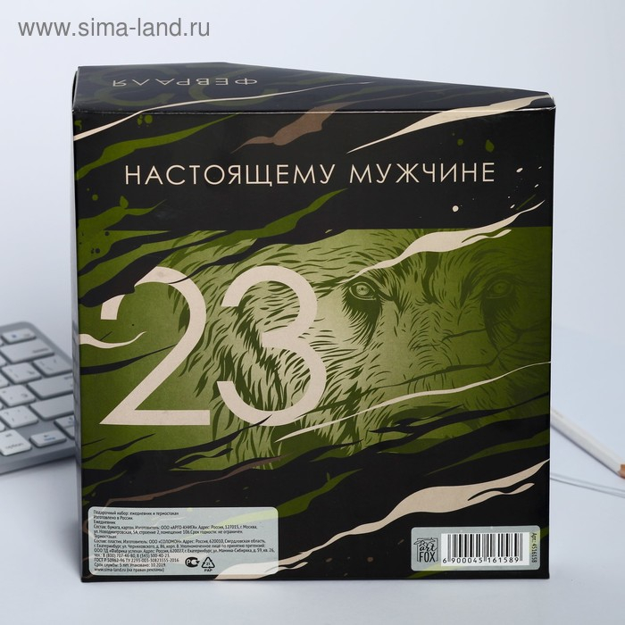 Подарочный набор «23 февраля медведь»: ежедневник и термостакан