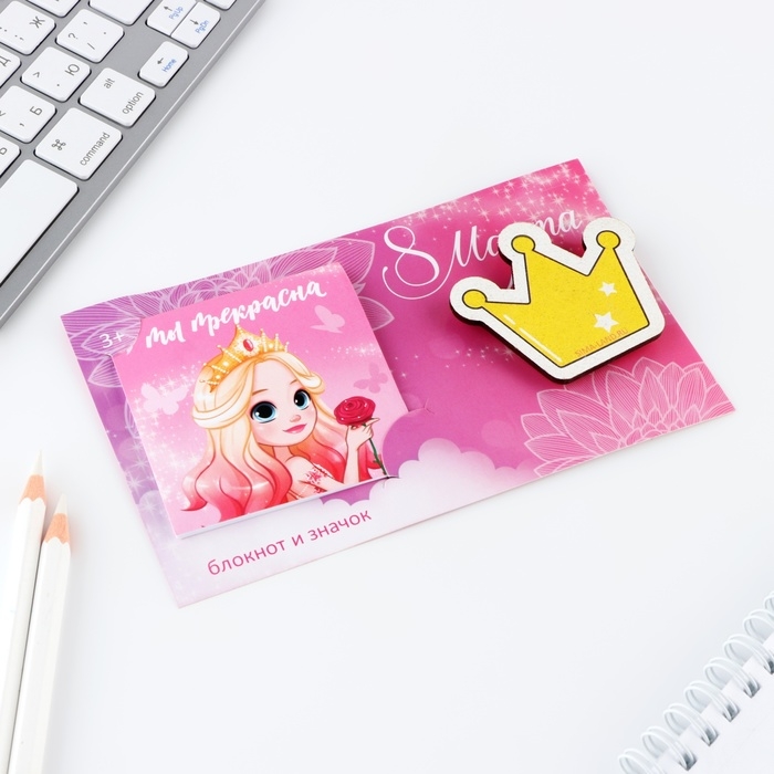 Подарочный набор: блокнот и значок «Принцесса»