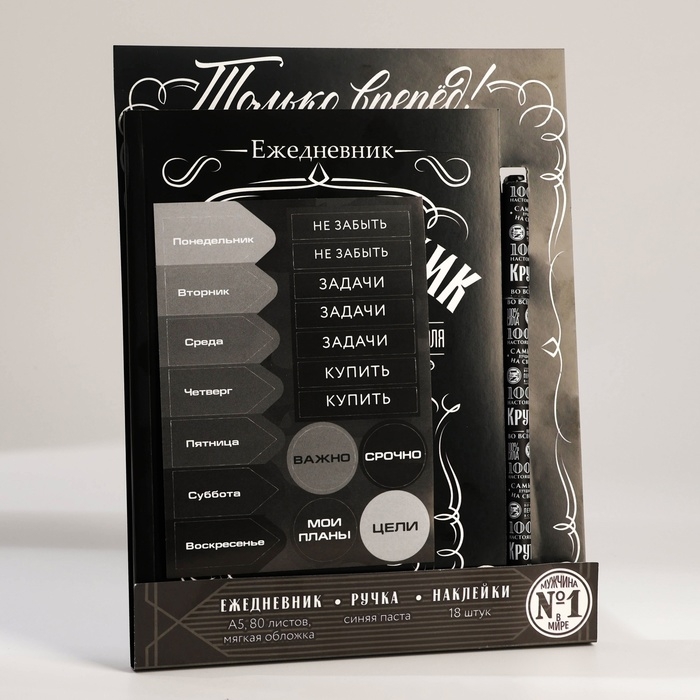 Подарочный набор ежедневник А5, 80 листов, наклейки и ручка «Крутой мужик»