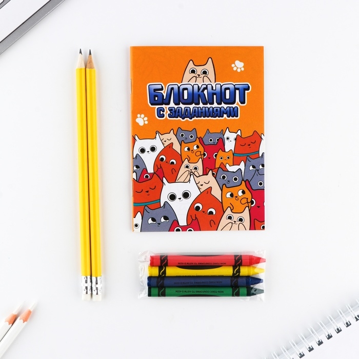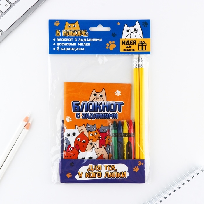 Подарочный набор блокнот А6, карандаши (2 шт.) и восковые мелки (4 шт.) «Для тех, у кого лапки»