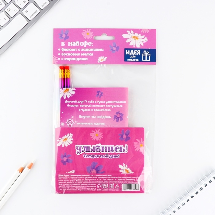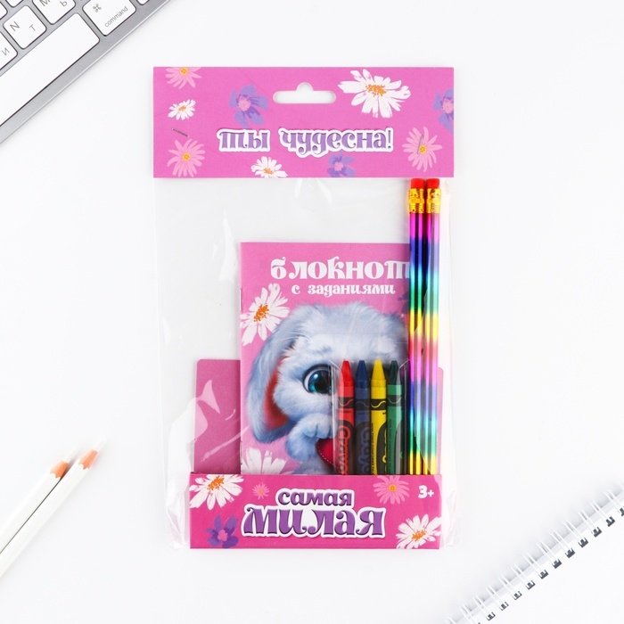 Подарочный набор блокнот А6, карандаши (2 шт.) и восковые мелки (4 шт.) «Самая милая»