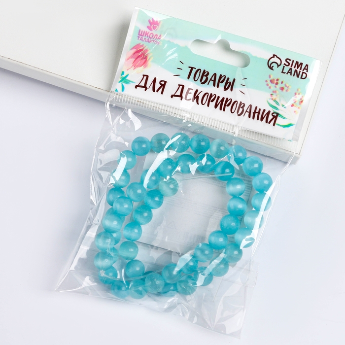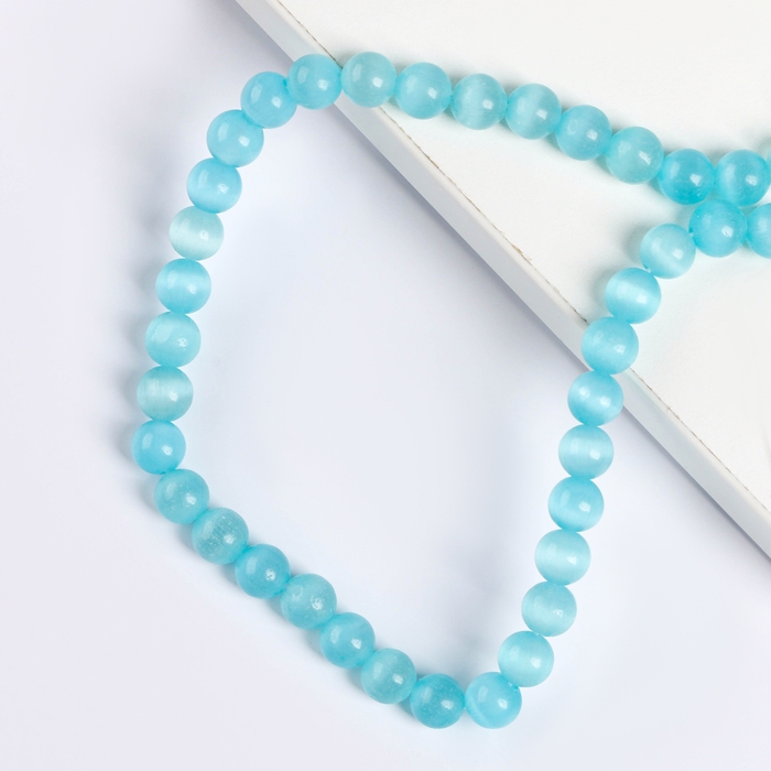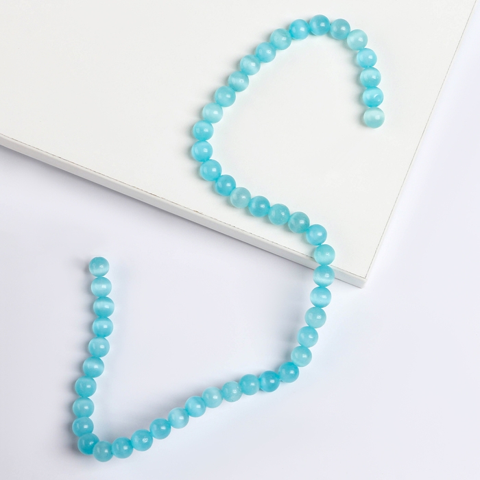 Бусины из натурального камня «Кошачий глаз» набор 50 шт., 1 шт. — 8 мм, бирюзовый