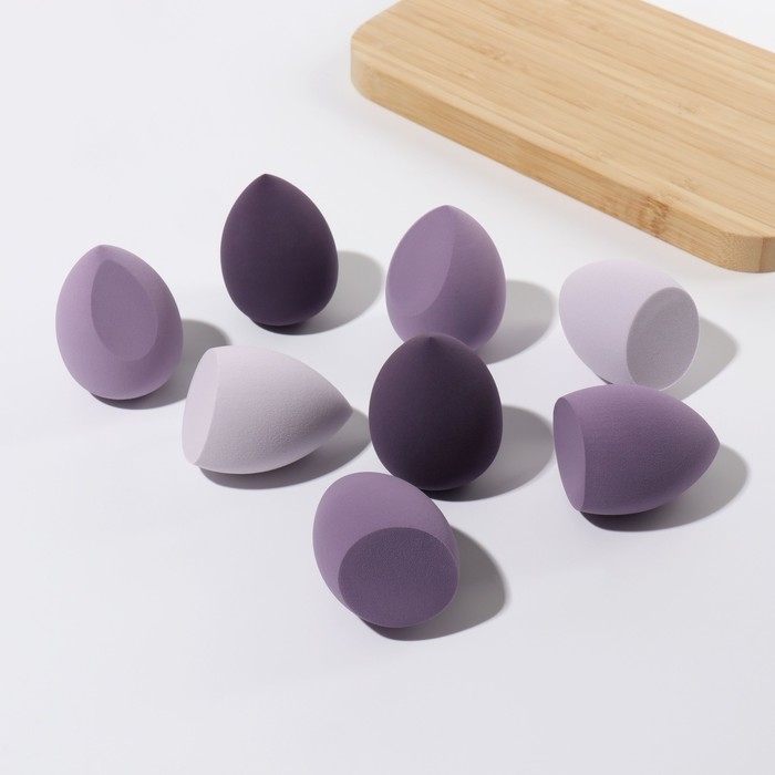 Спонжи для макияжа, набор - 8 шт, увеличиваются при намокании, цвет фиолетовый
