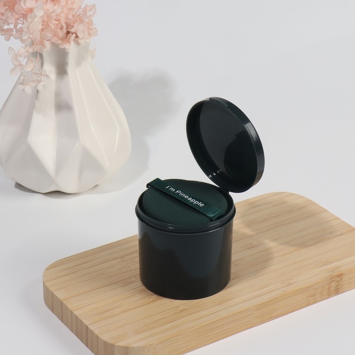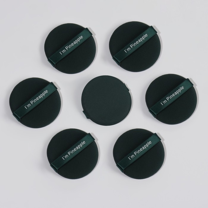 Спонжи для макияжа «PINNEAPPLE», набор - 7 шт, d = 5,5 см, с держателем, в футляре, цвет изумрудный