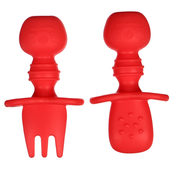 Набор детских столовых приборов, вилка, ложка, цвет красный