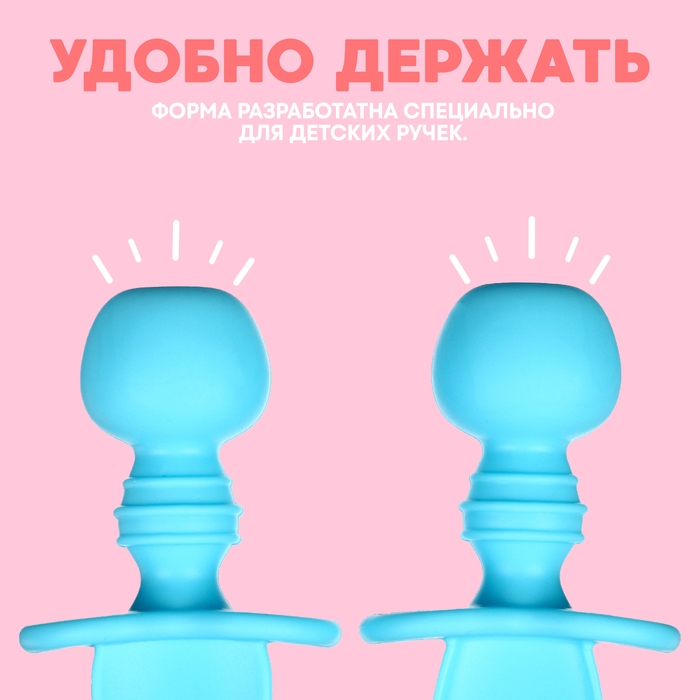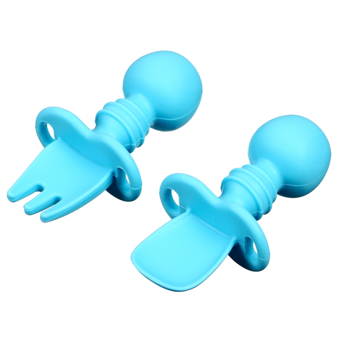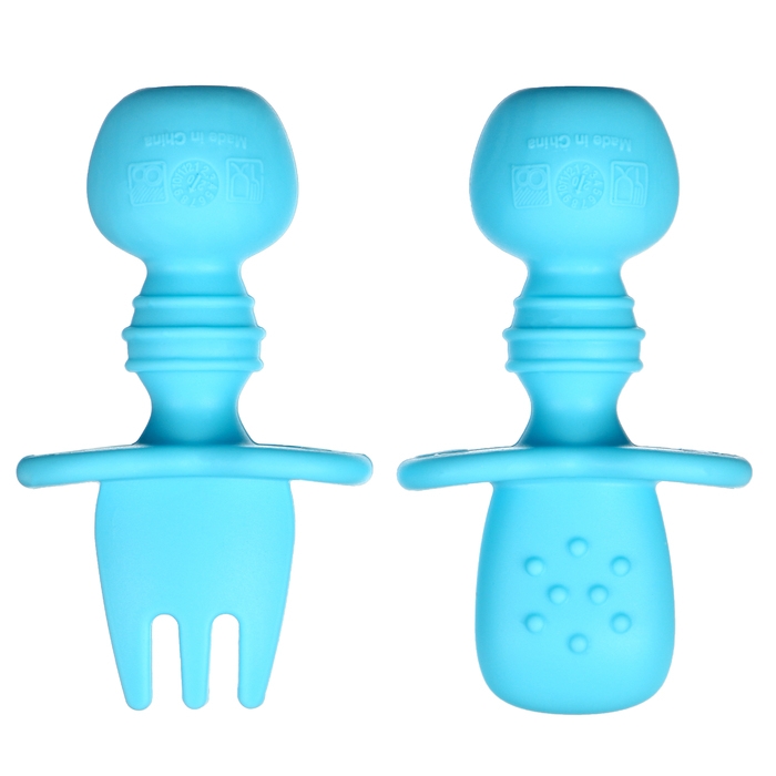 Набор детских столовых приборов, вилка, ложка, цвет голубой