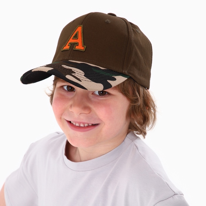 Кепка детская для мальчика «A», цвет коричневый, р-р 52-54, 5-7 лет