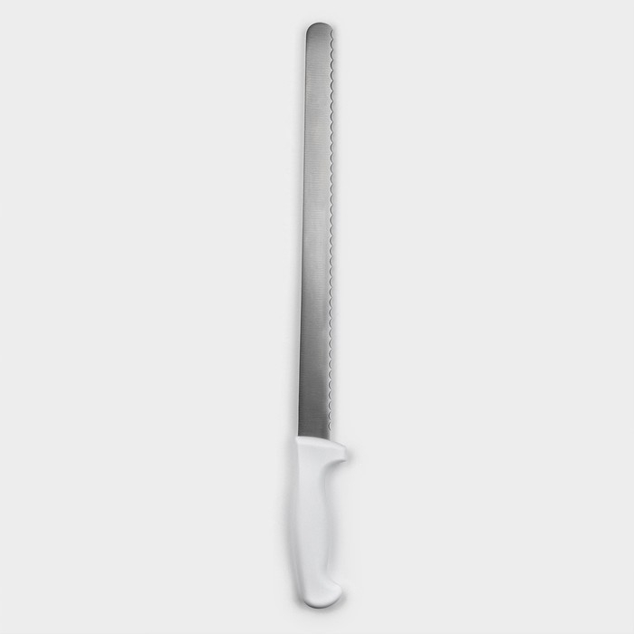 Нож для бисквита, длина лезвия 34 см, крупные зубчики, цвет белый