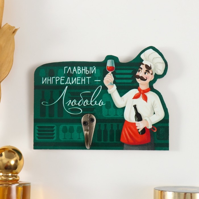 Крючок декоративный дерево "Главный ингредиент - любовь" 13х10 см