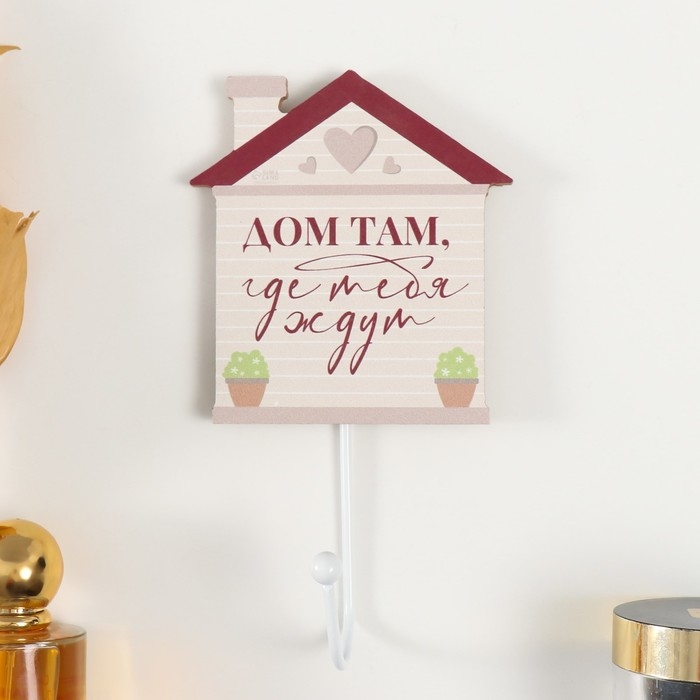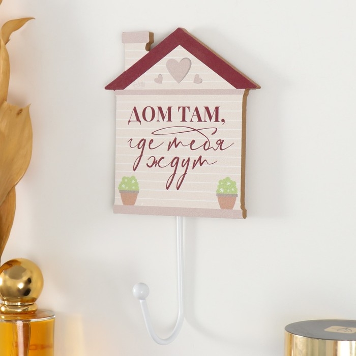 Крючок декоративный дерево "Дом там, где тебя ждут" 10х11 см