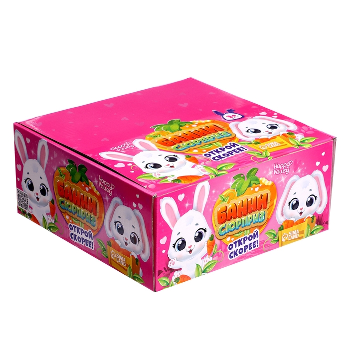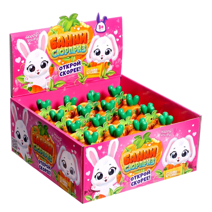 - В комплекте игрушка-кролик. Какая именно окажется в коробочке, ребёнок узнает, когда откроет упаковку-морковку.