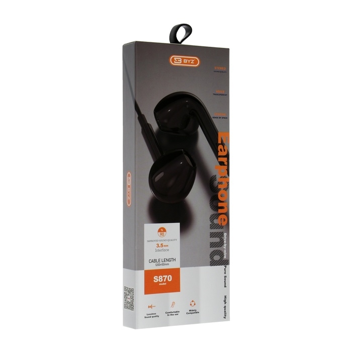 Наушники BYZ S870, проводные, вкладыши, микрофон, 3,5 мм, 1.2 м, чёрные