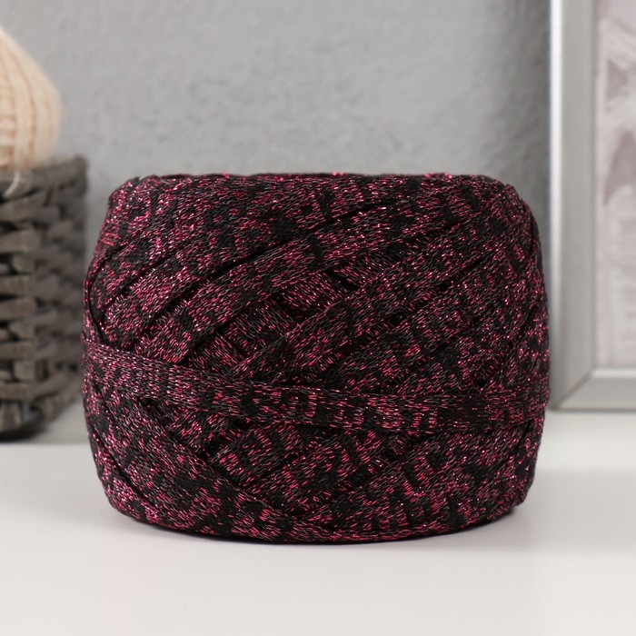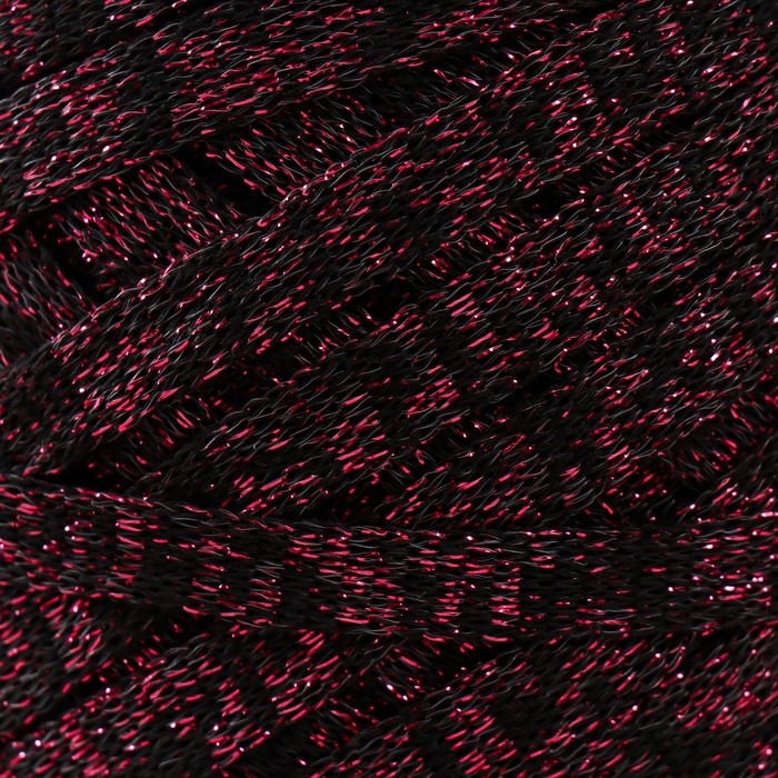 Трикотажная пряжа "Риббон" с люрексом 85м/170±5 гр (Черный, люрекс: Фуксия)