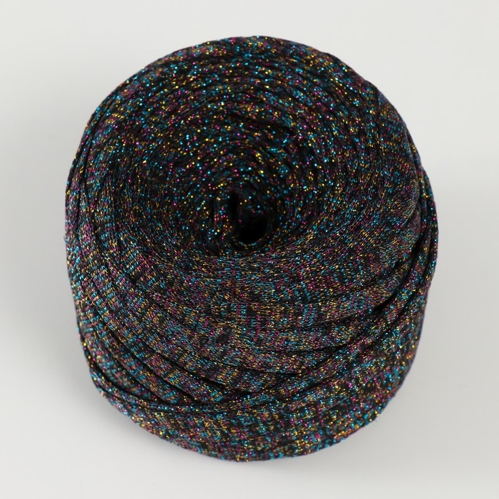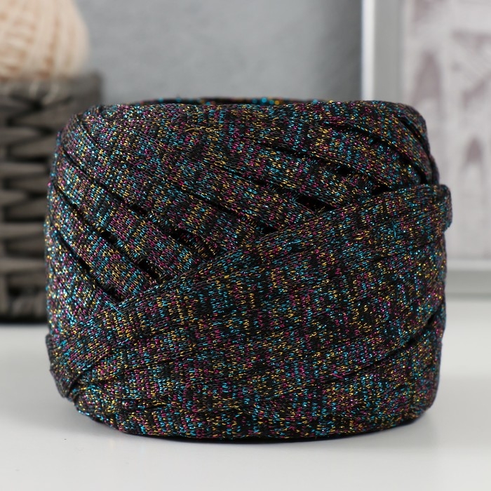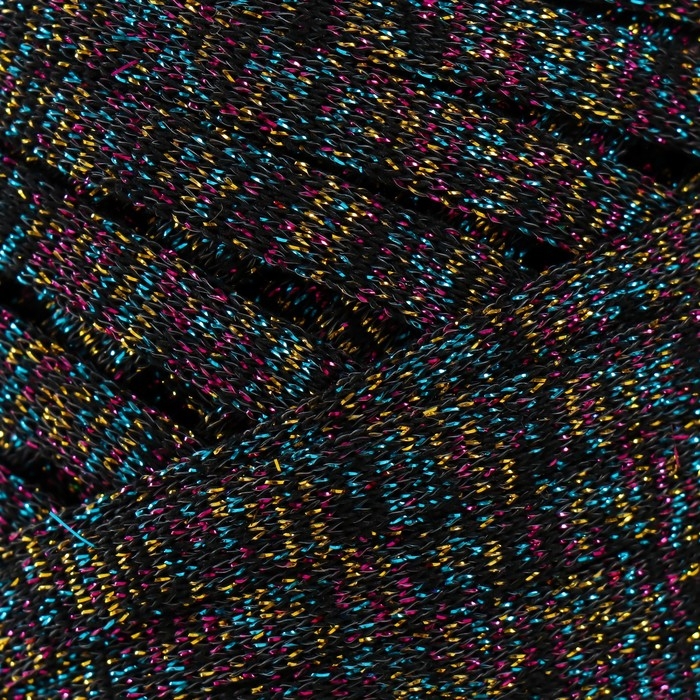 Трикотажная пряжа "Риббон" с люрексом 85м/170±5 гр (Черный, люрекс: Радуга)