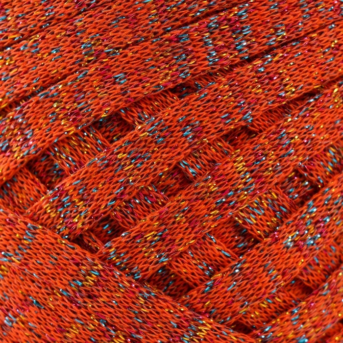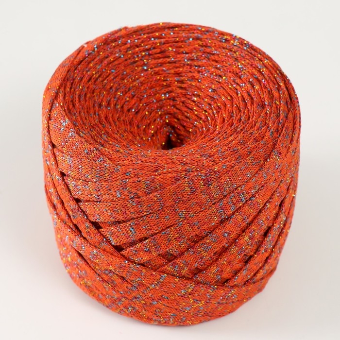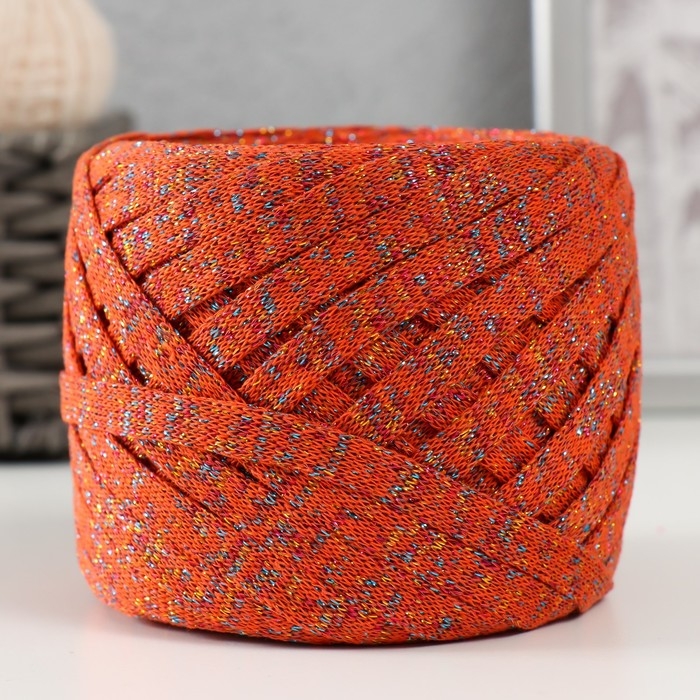 Трикотажная пряжа "Риббон" с люрексом 85м/170±5 гр (Рябина, люрекс: Радуга)