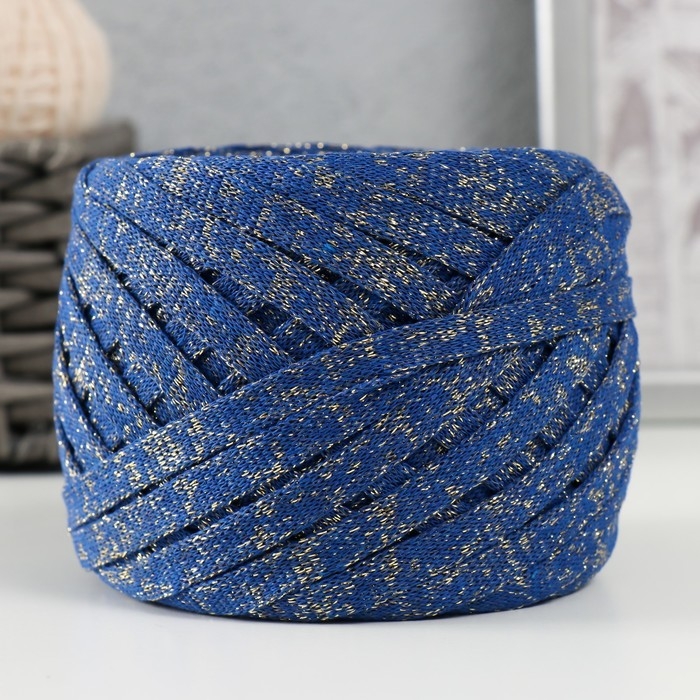 Трикотажная пряжа "Риббон" с люрексом 85м/170±5 гр (Сапфир, люрекс: Золото)