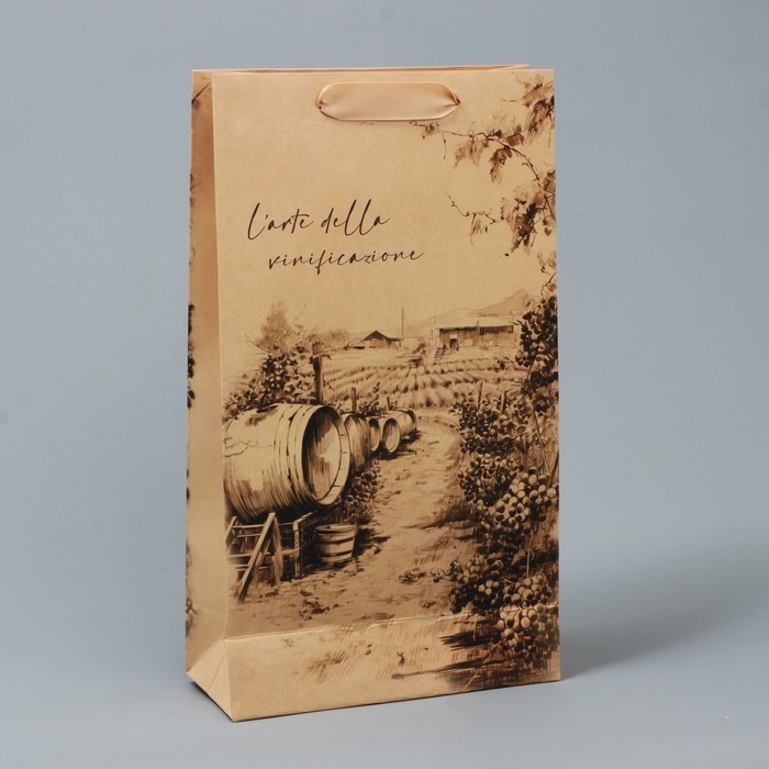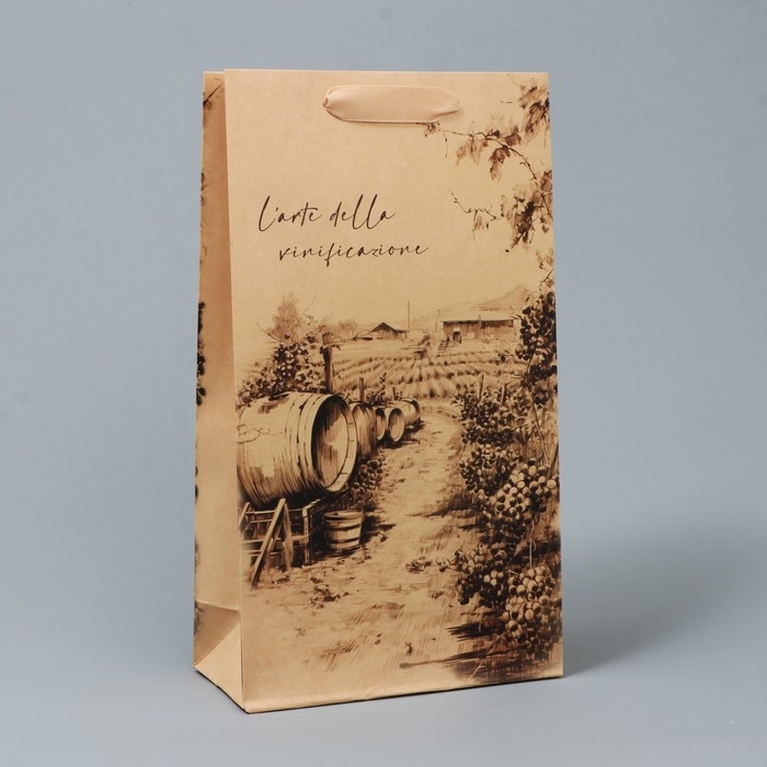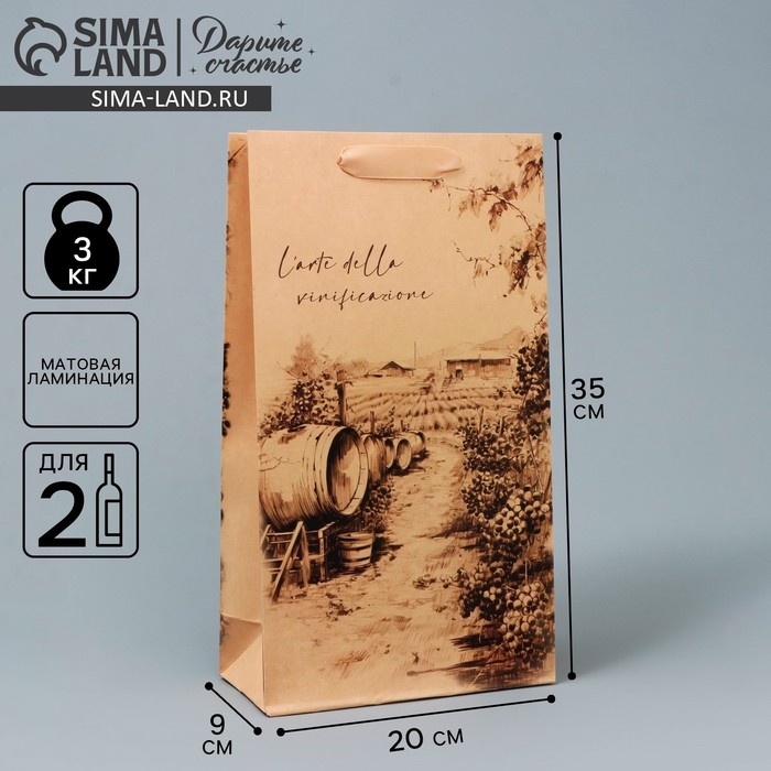 Пакет подарочный под две бутылки, упаковка, Winery, 35 х 20 х 9 см