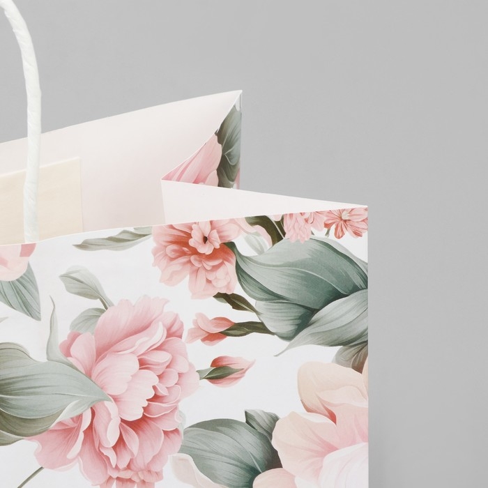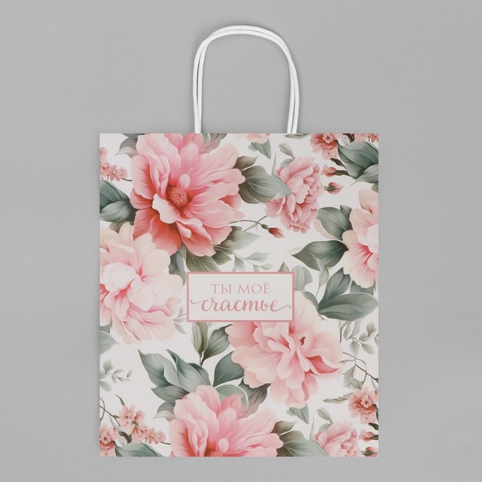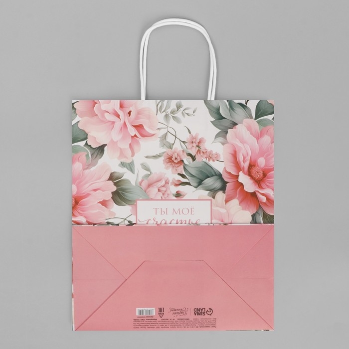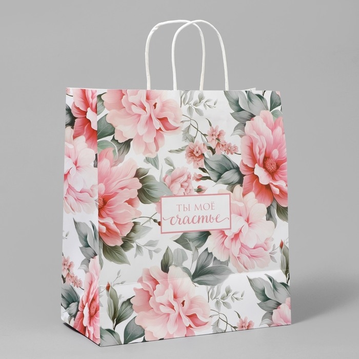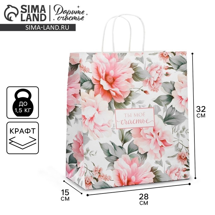Пакет подарочный крафт, упаковка, «Моё счастье», цветы, 32 х 28 х 15 см