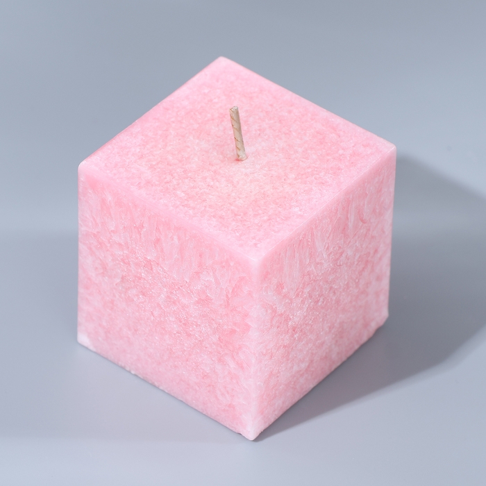Розовая свеча имеет квадратную форму и размер 5х5 см, что делает ее компактной и удобной для размещения в любом месте.