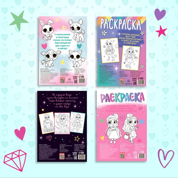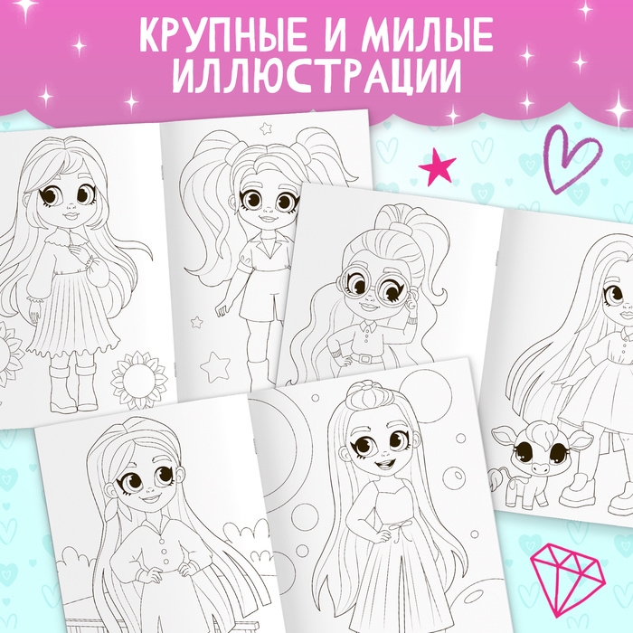 Набор раскрасок «Для девочек», 4 шт. по 16 стр., формат А4
