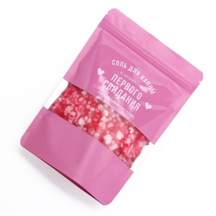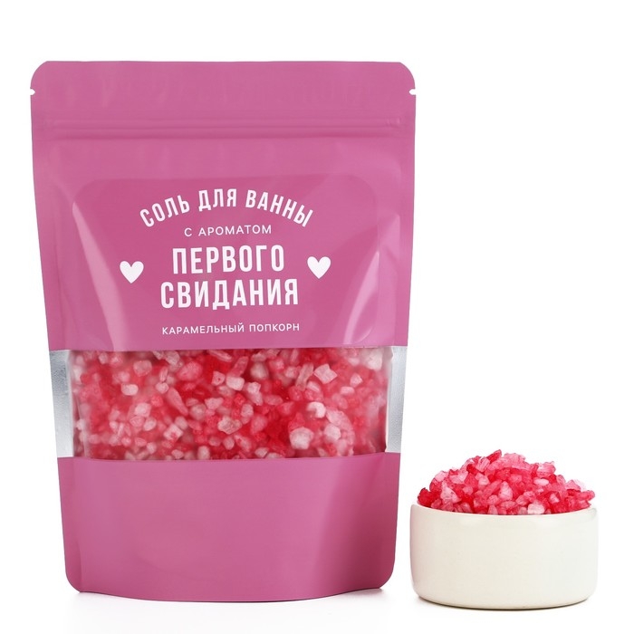 Cоль для ванны «С ароматом первого свидания», 330 г, аромат карамельного попкорна, ЧИСТОЕ СЧАСТЬЕ