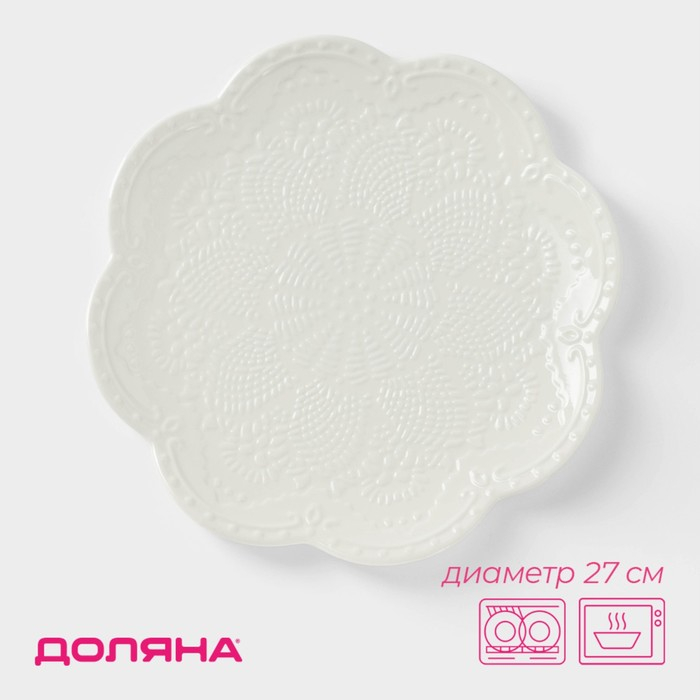Тарелка фарфоровая Доляна «Сьюзен», d=27 см, цвет белый