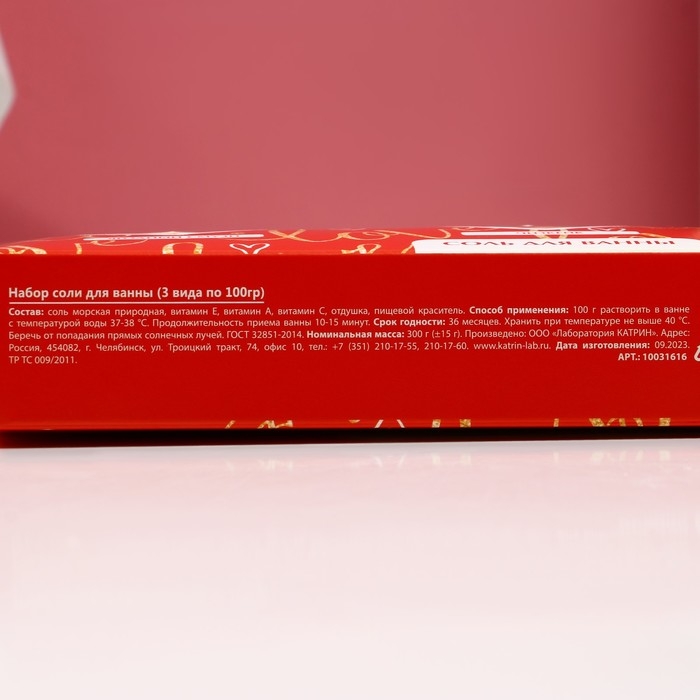 Подарочный набор косметики Love, соль для ванны 3 х 100 г, ЧИСТОЕ СЧАСТЬЕ