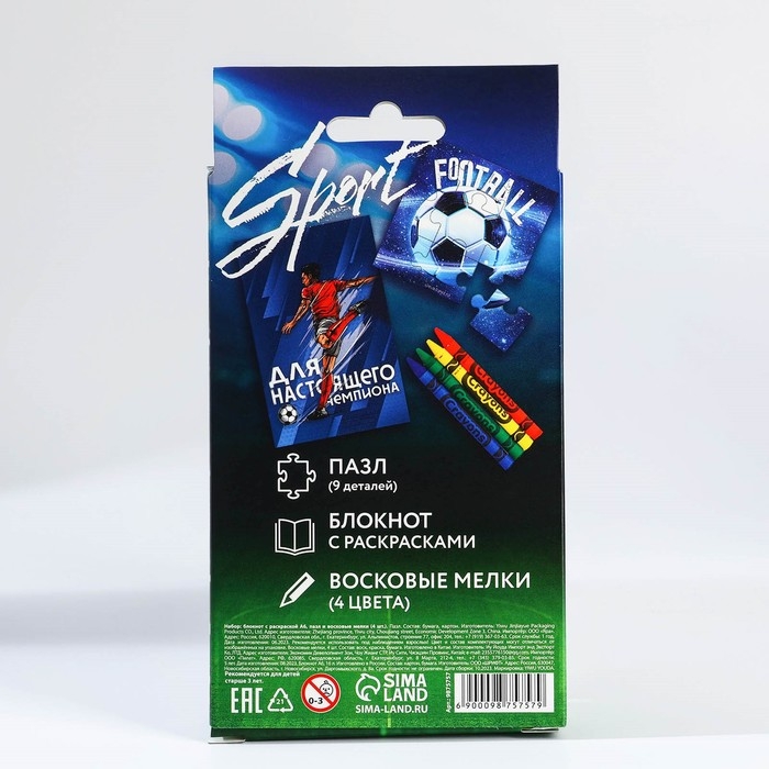 Подарочный набор блокнот - раскраска, мелки 4 шт. «Настоящий чемпион»
