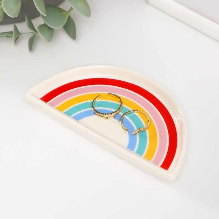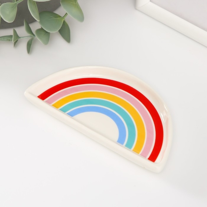 Сувенир керамика подставка под кольца "Радуга" 12х6х1,6 см