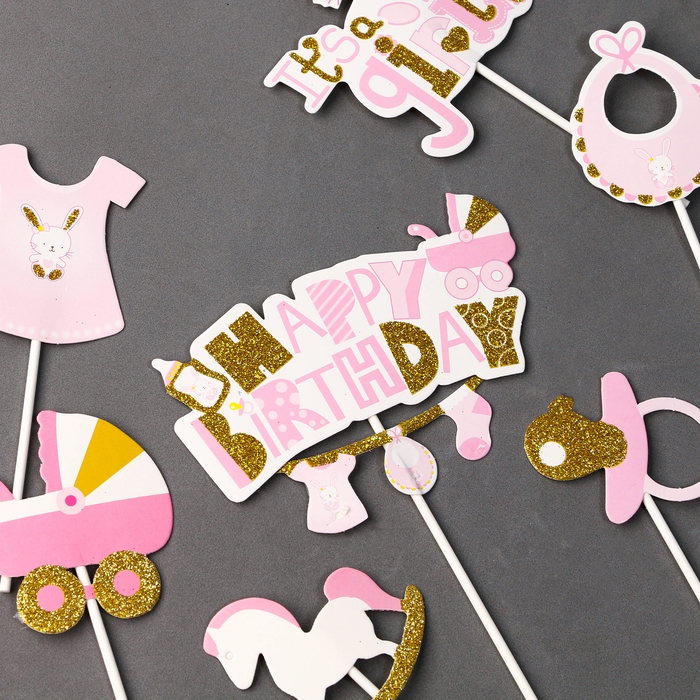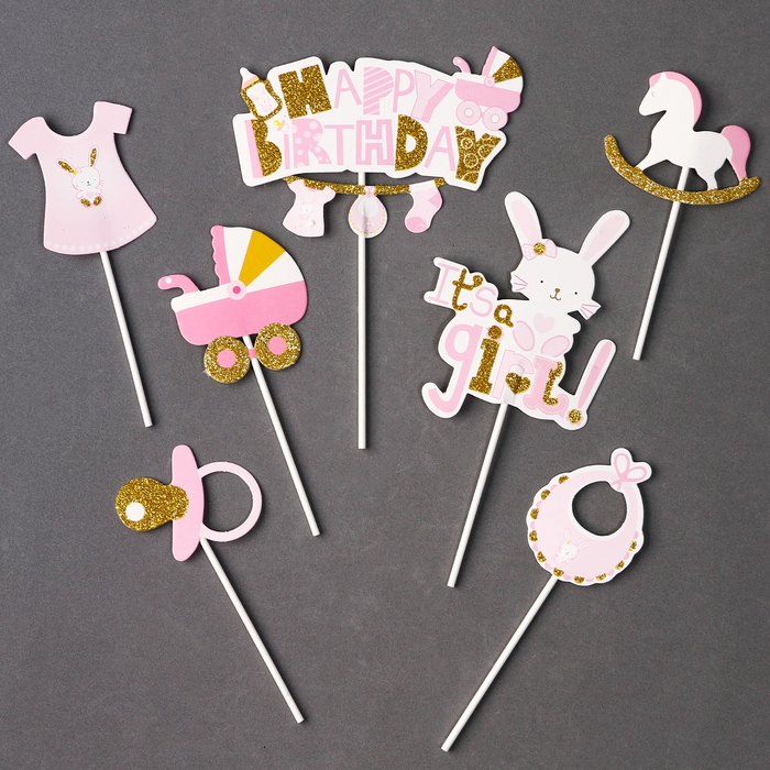 Набор топперов «С днём рождения, доченька», набор 7 шт.