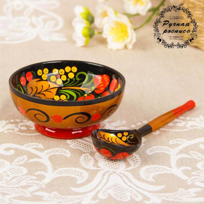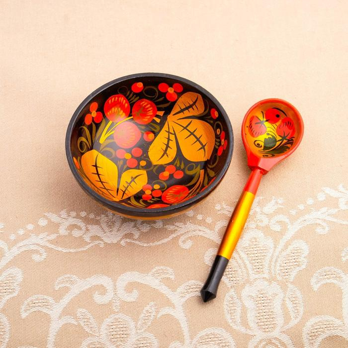 Набор «Розетка с ложкой», 10×4×10 см, хохлома