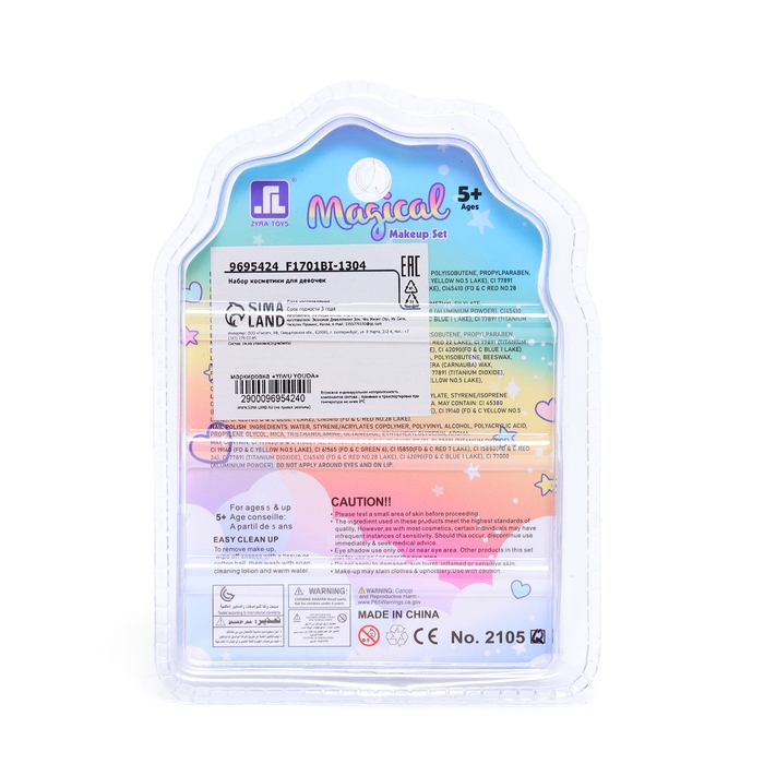 Набор косметики для девочки "Волшебный единорог" с наклейками включает в себя: