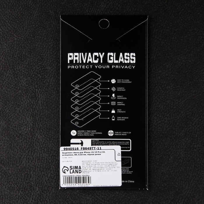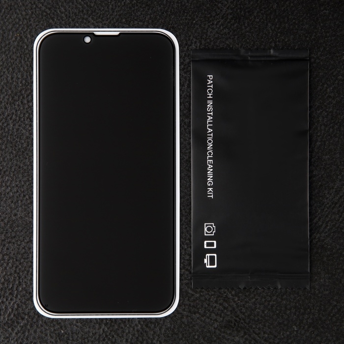 Защитное стекло для iPhone 13/13 Pro/14, антишпион, 9H, 0.33 мм, чёрная рамка