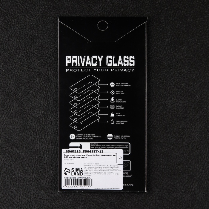 Защитное стекло для iPhone 14 Pro, антишпион, 9H, 0.33 мм, чёрная рамка