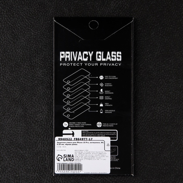 Защитное стекло для iPhone 15 Pro, антишпион, 9H, 0.33 мм, чёрная рамка