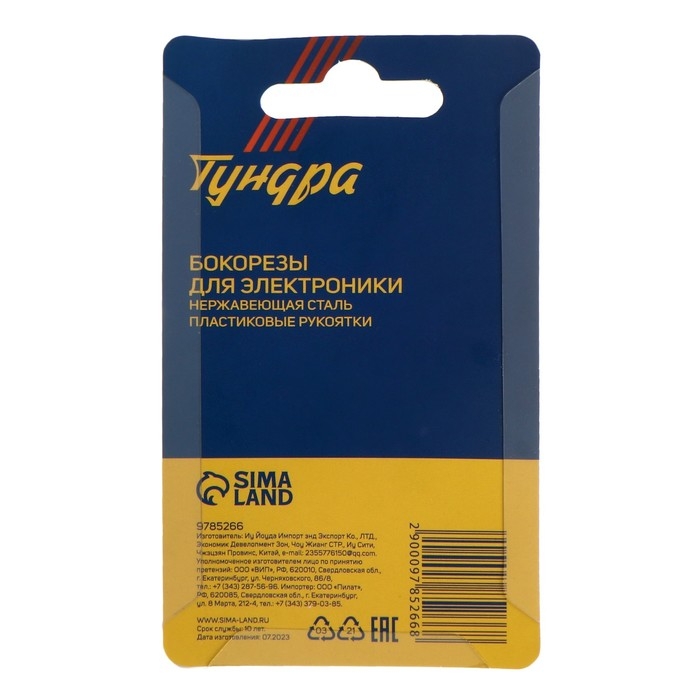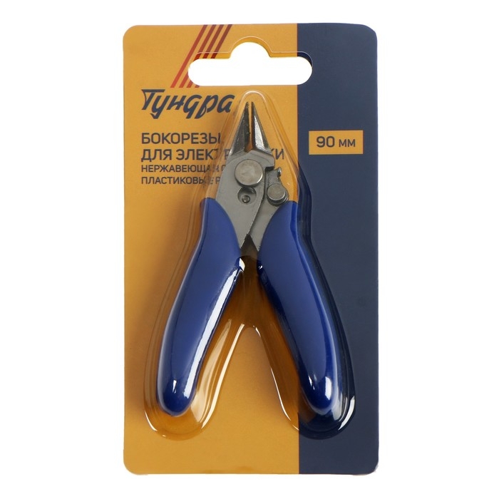 Бокорезы для электроники ТУНДРА mini, нержавеющая сталь, пластиковые рукоятки, 90 мм