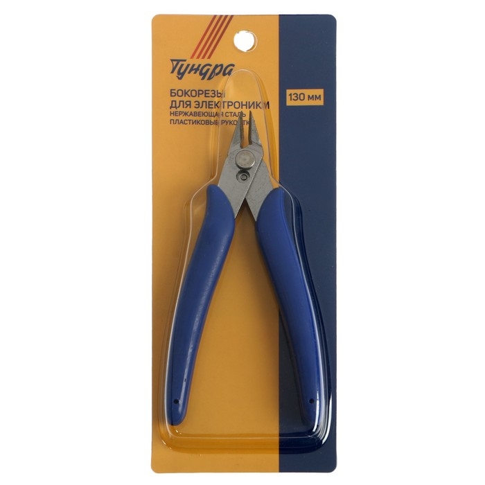 Бокорезы для электроники ТУНДРА mini, нержавеющая сталь, пластиковые рукоятки, 130 мм