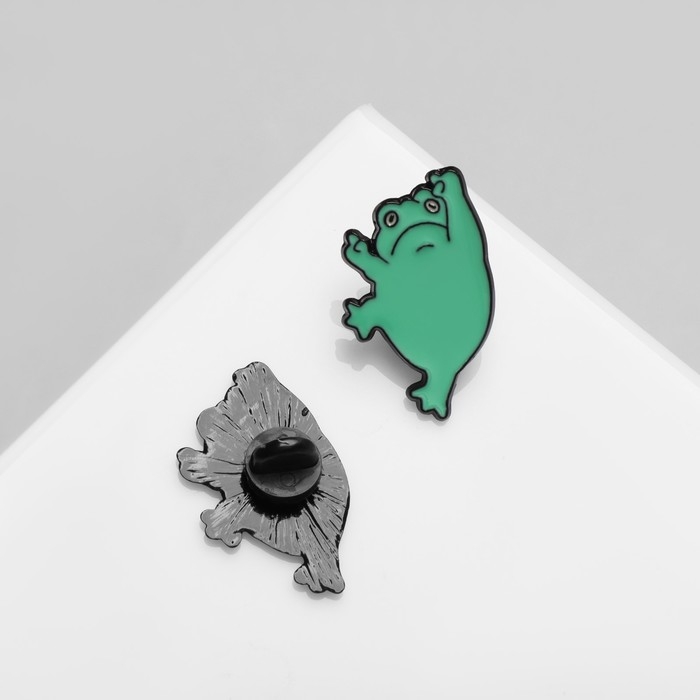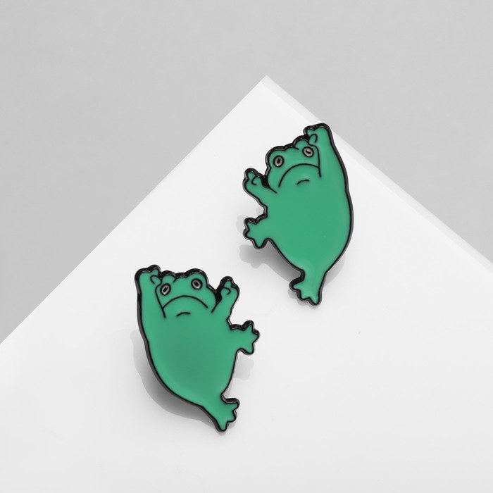 Набор значков (2 шт.) «Лягушки», цвет зелёный в чёрном металле