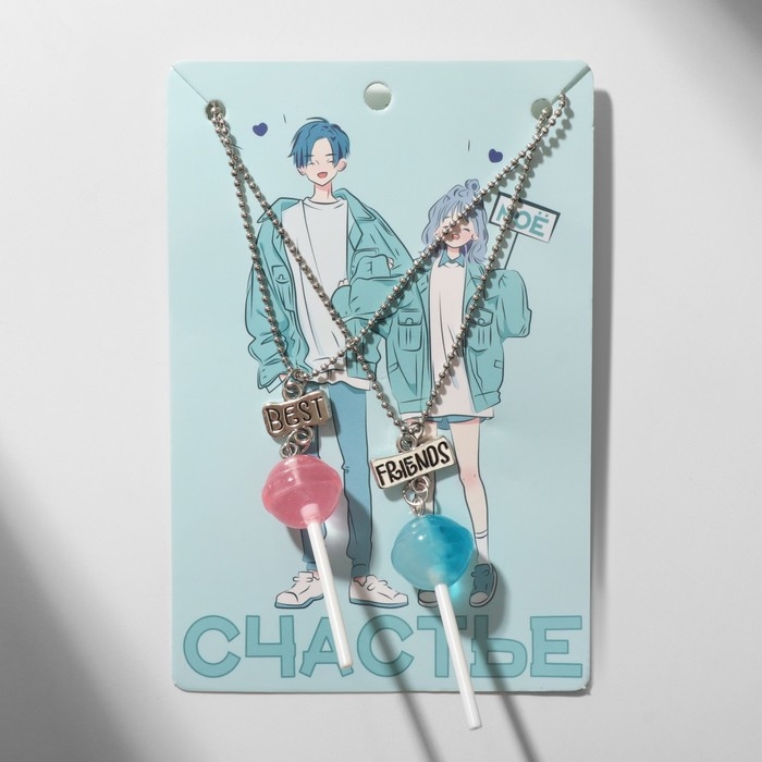 Кулоны «Неразлучники» леденцы, цвет сине-розовый, 40,5 см