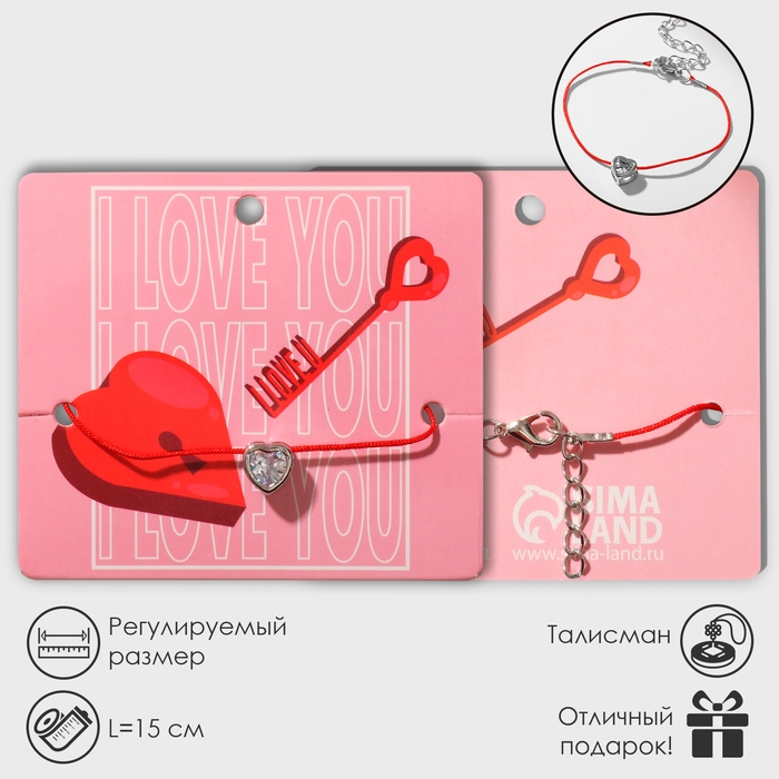 Браслет-оберег «Нить Красная нить» набор 2 шт., сердце, цвет красно-белый