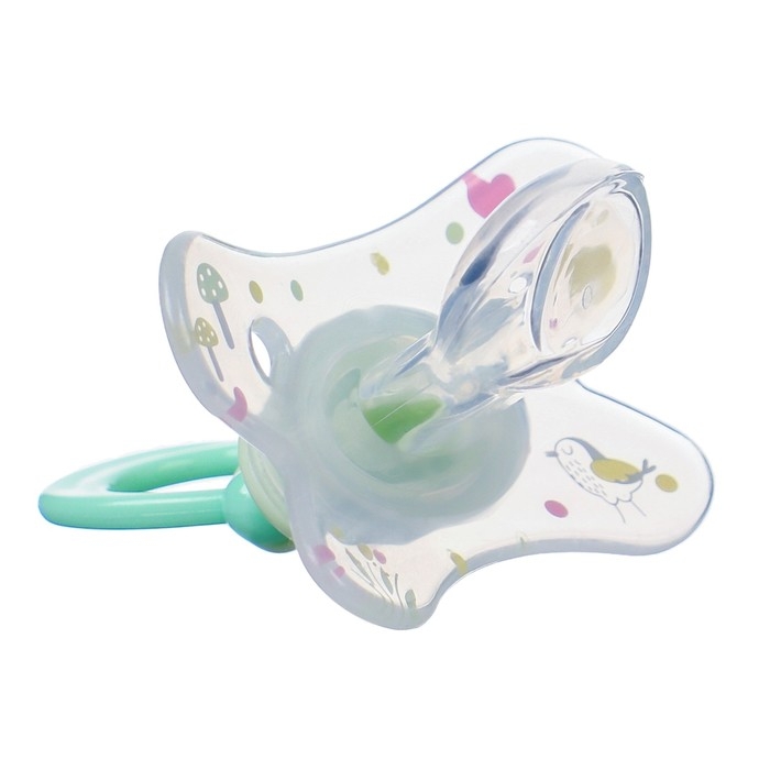 Соска-пустышка предназначена для детей с 12 мес. Форма нагубника с симметрично расположенными отверстиями обеспечивает свободную циркуляцию воздуха для предотвражения появления опрелостей.