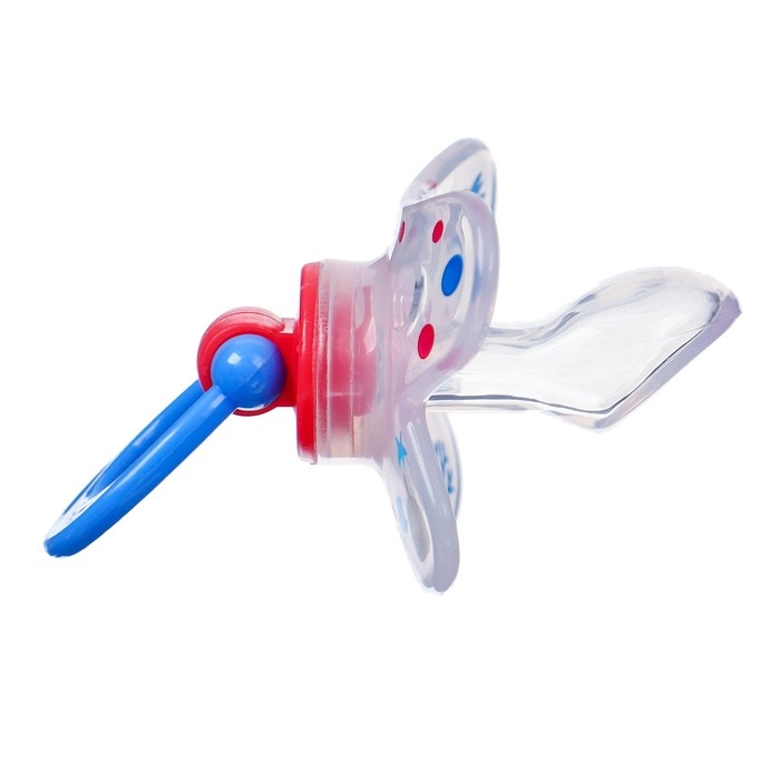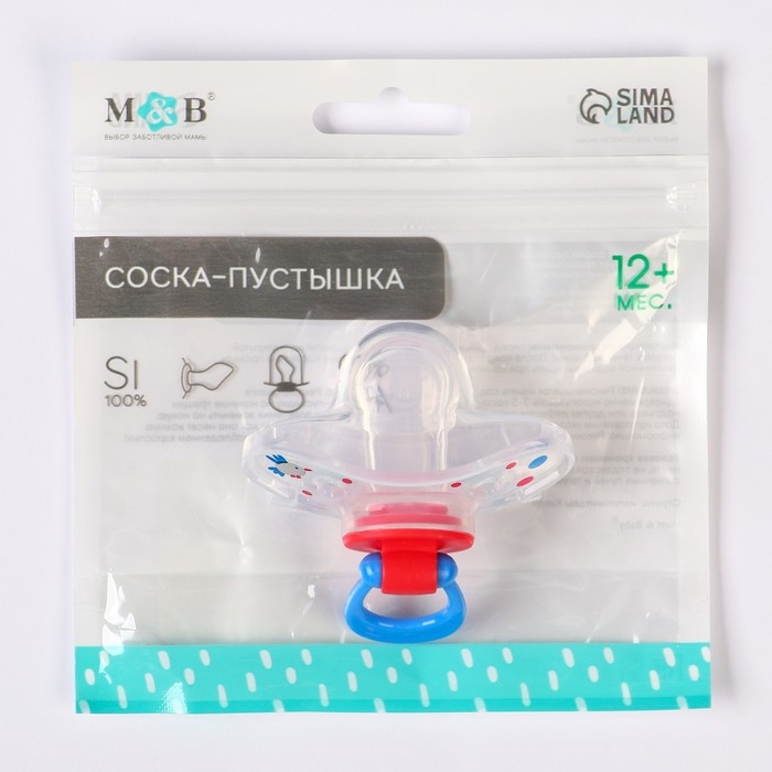 Соска - пустышка силиконовая ортодонтическая «Зайка», от 12 мес., с колпачком, цвет синий/красный