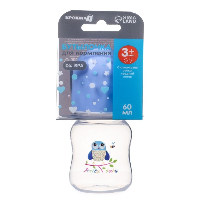Бутылочка для кормления, классическое горло, 60 мл., от 3 мес., цвет голубой