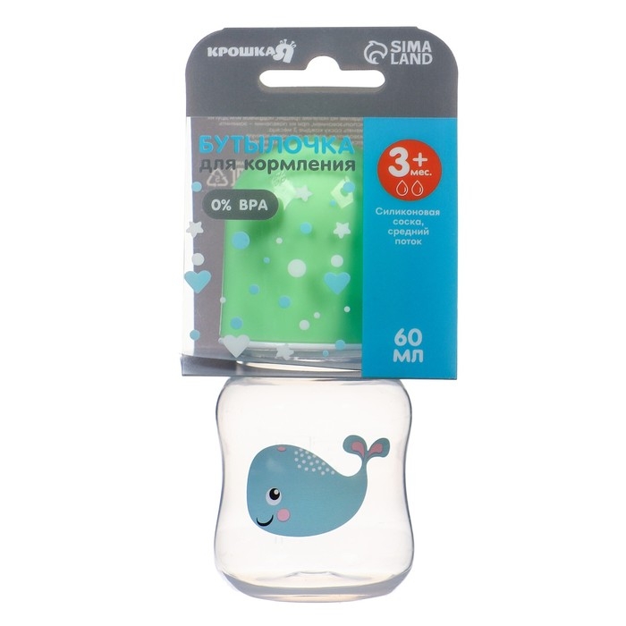 Бутылочка для кормления, классическое горло, 60 мл., от 3 мес., цвет зеленый